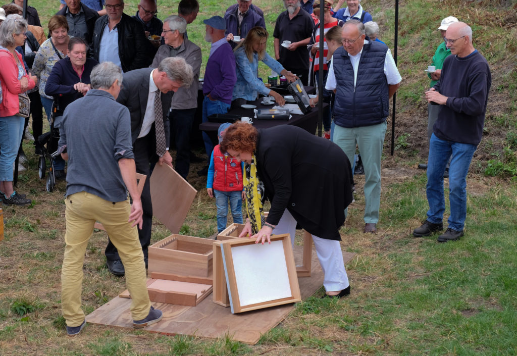 De openingshandeling. Het in elkaar zetten van een bijenkast